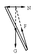 对梯子受力分析知,梯子受竖直向下的重力 G,墙施加的水平向右的弹力N,另外地面施加的作用力,此三力不平行,故三力应共点,如图所示,F应交于G与N的交点,所以可能的方向是沿