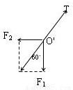 以结点O′为研究对象,受力如图,根据平衡条件得,弹簧的弹力为F1=Tcos60°=10N.故A错误.