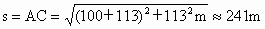 如图所示,某同学沿平直路面由A点出发,前进了100m到达斜坡底端B点,又沿倾角为45°的斜坡,前进160m到达C点,求他的位移大小和路程.