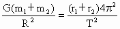 两星球的总质量为 根据万有引力定律和向心力公式得: 对行星 注意:引力式中的距离与行星轨道半径不同 对行星 化简得 所以 |