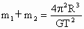 两个星球组成双星,它们在相互间的万有引力作用下,绕连线上某一点做周期相同的匀速圆周运动.现测得两星中心距离为R,其运动周期为T,两星的总质量为_______________.
