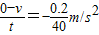 ÓÉv=0.2m/s£¬t=40s£¬v=0£¬Ôòa=