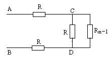 RAB=2R+ 分析网络结构特点,由极限概念可知 当n→∞时, RAB=Rn=Rn-1= 即