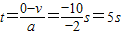 解答:解:①汽车刹车到停止所需的时间