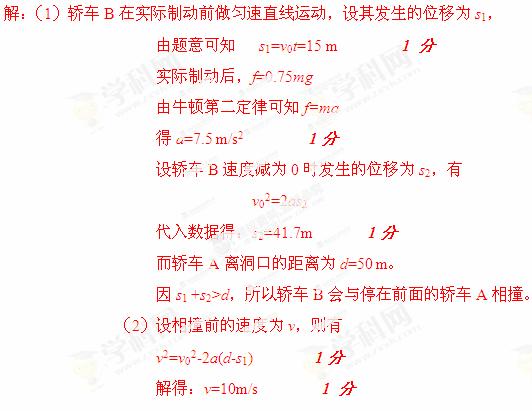 (1)试通过计算说明轿车B是否会与停在前面的货车A相撞?