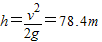 解答:解:由v2=2gh得: