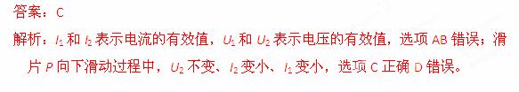 D.滑片P向下滑动过程中,U2不变、I1变大