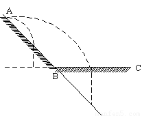 如图所示,AB为斜面,BC为水平面,从A点以水平初速度v向右抛出一小球,落点与A点的水平距离为x1.现从A点以水平初速度3v向右抛出另一小球,其落点与A点的水平距离为x2.若不计空气阻力,不考虑小球反弹,则x1:x2可能为 ( )