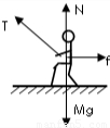 对人进行受力分析,受拉力、重力、支持力和摩擦力,如图所示
