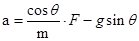 试题分析:沿斜面方向应用牛顿第二得:Fcosθ-mgsinθ=ma,整理得到a-F关系式: