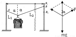 ½â´ð£º½â£ºA¡¢B¡¢ÉèÉþ×Ó¼äµÄ¼Ð½ÇΪ2¦Á£¬Éþ×Ó×ܳ¤ÎªL£¬Á½¸Ë¼ä¾àÀëΪS£¬Óɼ¸ºÎ¹ØÏµµÃ