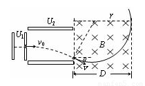 (1)微粒在加速电场中由动能定理得:qU1=mv02/2 ① 2分