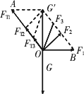 OA固定不动,绳OB在竖直平面内由水平方向向上转动,则在绳OB由水平转至竖直的过程中,绳OB的张力的大小将[ ]
