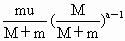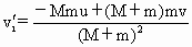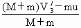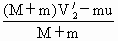 设雪橇反动的方向为正方向,狗第1次跳下雪橇后雪橇的速度为V1,根据动量守恒定律有MV1+m(V1+u)=0 狗第1次跳上雪橇时,雪橇与狗的共同速度为 将u=-4 m/s,v=5 m/s,M=30 kg,m=10 kg代入,得 |