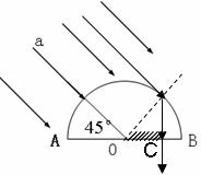 的半圆柱形玻璃砖的圆柱面上,光线a是一条与半径重合的光线,该光线照射到圆心O点与直径AB夹角为45°,请作图并求出AB边上光线射出的长度。