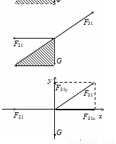 解法二:(分解法),把重力分解得到的两个分力与弹力F21和F31组成两对平衡力,这样也把力的示意图转化为以重力为标度的力的图示,有向线段的长度表示了力的大小。以下解法同上。