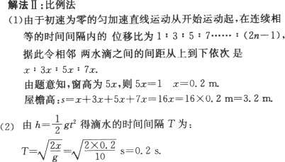 (1)此屋檐离地面多高?(2)滴水的时间间隔是多少?