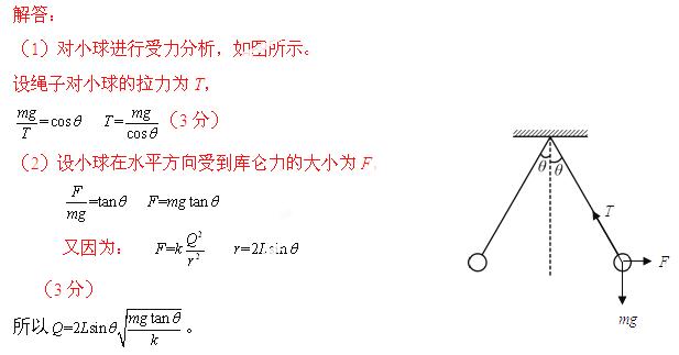 (2013北京朝阳区期末)用两根长度均为L的绝缘细线各系一个小球,并悬挂于同一点。已知两小球质量均为m,当它们带上等量同种电荷时,两细线竖直方向的夹角均为θ,如图所示。若已知静电力常量为k,重力加速度为g。求: