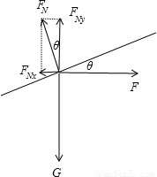【答案】分析:要求水平推力和斜面的支持力,先对物体进行受力分析,再根据共点力作用下物体平衡条件是合力为0列方程,在水平方向有FNcosθ=F,在竖直方向有FNcosθ=G