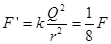 如图所示,在真空中,两个放在绝缘架上的相同金属小球A和B,相距为r。球的半径比r小得多,A带电荷量为+4Q,B带电荷量为-2Q,相互作用的静电力为F。现将小球A和B互相接触后,再移回至原来各自的位置,这时A和B之间相互作用的静电力为