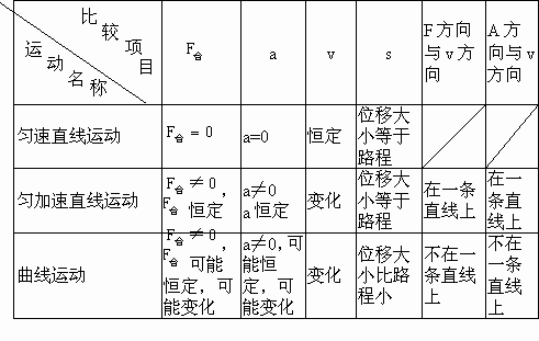 曲线运动可能是匀变速运动,例如推出的铅球,在不计空气阻力的情况下,铅球只受重力作用,加速度恒定,铅球的运动轨迹虽然是曲线,但其运动却是匀变速运动.当然,曲线运动也可能是非匀变速运动. (3) 利用曲线运动的条件判断恒力的方向利用曲线运动的条件判断恒力方向的方法如下:①作初始位置物体运动速度的方向,并作与速度方向重合的一条直线. ②看物体运动轨迹的弯曲情况,则物体所受合外力的方向就在所作直线有轨迹的一方. ③同理作出末位置的物体所受合外力的方向范围,将两个范围平移在椘穑