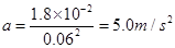 ②1.80(2分)(填1.8也可);5.0m/s2 (2分)