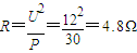 (2)根据额定功率与额定电压求出远程车灯“12V 30W”的电阻,再求出它们并联的总电阻,根据欧姆定律求出总电流和路端电压.