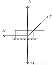 物体受四个力处于平衡状态,四个力的合力一定为零.其中重力G竖直向下,摩擦力Ff水平向左,支持力竖直向上,拉力斜向右上方;