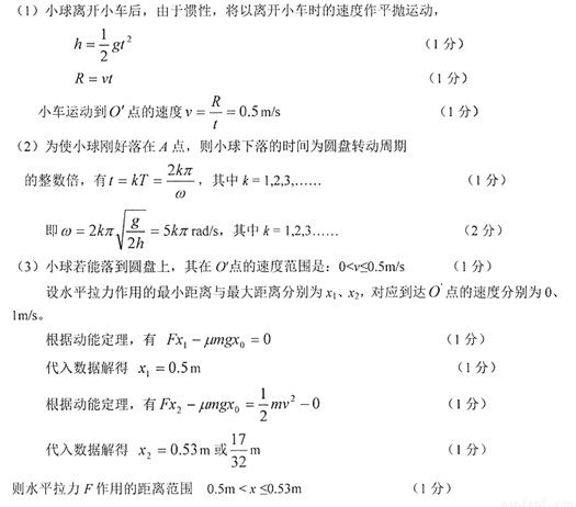 3.为使小球能落到圆盘上,求水平拉力F作用的距离范围。