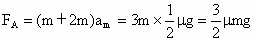 如图所示,质量分别为m和2m的两物体A、B叠放在一起,放在光滑的水平地面上,已知A、B间的最大摩擦力为A物体重力的μ倍,当用水平力分别作用在A或B上,使A、B保持相对静止做加速运动,则作用于A、B上的最大拉力