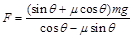 (13分)倾角为θ的斜面上有质量为m 的木块,它们之间的动摩擦因数为μ.现用水平力F推动木块,如图所示,使木块恰好沿斜面向上做匀速运动.若斜面始终保持静止,求水平推力F的大小.