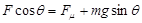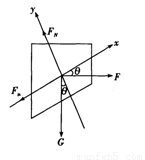 【解析】分析物体受力情况(1分),选斜面方向为x 轴,垂直斜面方向为y 轴,把不在轴上的重力G和水平分力F分解到坐标轴上,由于物体处于平衡状态,则有