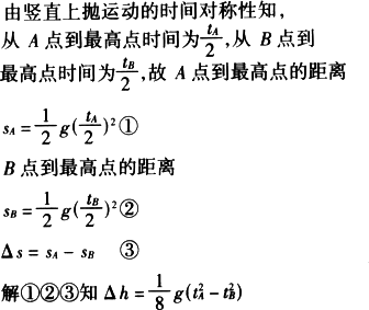 一个从地面竖直上抛的物体,它两次经过一个较低点A的时间间隔为tA,两次经过一个较高点B的时间间隔为tB,则A、B之间距离为