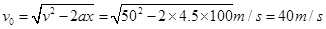 ÎÒ¹úµÚÒ»ËÒº½¿Õĸ½¢¡°ÁÉÄþ½¢¡±ÒѰ´¼Æ»®Íê³É½¨ÔìºÍÊÔÑéÊÔº½¹¤×÷£¬ÓÚ2012Äê9ÔÂ25ÈÕÉÏÎçÕýʽ½»¸¶º£¾ü¡£Èôº½¿Õĸ½¢ÉÏÓаïÖú·É»úÆð·ÉµÄµ¯Éäϵͳ£¬ÒÑÖªÕ½¶·»úÔÚÅܵÀÉϼÓËÙʱ²úÉúµÄ¼ÓËÙ¶ÈΪ4.5m/s2, Õ½¶·»ú»¬ÐÐ100mʱÆð·É£¬Æð·ÉËÙ¶ÈΪ50m/s£¬Ôòº½¿Õĸ½¢¾²Ö¹Ê±µ¯Éäϵͳ±ØÐëʹս¶·»ú¾ßÓеijõËÙ¶ÈΪ