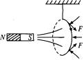 | 解析:方法1(电流元受力分析法):画出磁铁磁感线分布如图所示,当磁铁向环运动时,穿过环的磁通量增加,由楞次定律判断出铜环中的感应电流方向如图所示.铜环中有感应电流时铜环又要受到安培力的作用,分析铜环受安培力作用而运动时,可把铜环中的电流等效为多段直线电流元.取上、下两小段电流研究,由左手定则确定两段电流受力如图所示,由图可联想到整个铜环所受合力向右,则A选项正确.