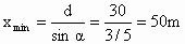 渡河的实际位移最小值为 50m.如下图所示设水流速度