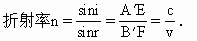 器材有:矩形有机玻璃条、刻度尺、三角板、木板、白纸和大头针. 用插针法得出光通过有机玻璃条的光路,如下图所示,在空气和有机玻璃的界面上,AO是入射光线,OB是折射光线,做出法线ON.取 则有机玻璃中的光速