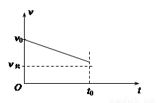 (2)如果其他条件不变,只是将木块固定在水平面上,以子弹射入木块时为计时起点,以t0表示子弹运动到木块最右端的时刻,请你在下面给出的坐标系中定性画出子弹在0~t0这段时间内的速度随时间变化的图线。(图中标出了子弹的初速度v0和未固定木块时子弹与木块的共同速度v共。)