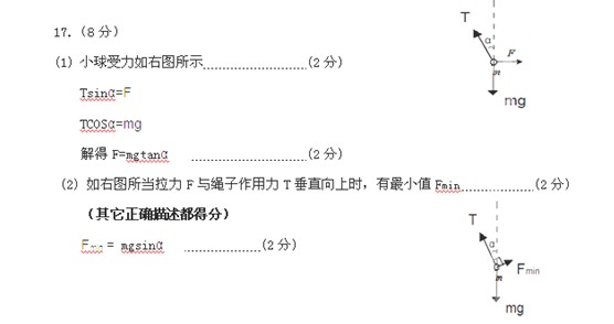 (2)改变拉力F的方向,保持小球静止且轻绳与竖直方向的夹角为α不变,求拉力的最小值Fmin及其方向.