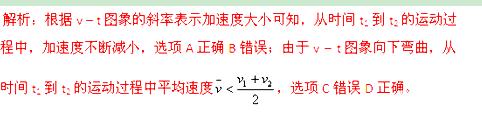 如图所示是物体在某段运动过程中的v – t图象,在t1和t2时刻的瞬时速度分别为v1和v2,则从时间t1到t2的运动过程中 ( )