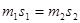 ⑵两物体的质量m1、m2和两木块落地点分别到桌子两侧边的水平距离s1、s2 ⑶![]()
