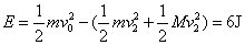 mv0=(M+m)v1,mv0=(M+m)v2,则 v1=v2=1m/s 所以 即转化为内能的能量等于整个系统机械能的损失. |