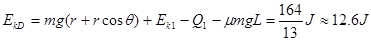 (即小球在B点的初动=小球增加的重力势能+因摩擦而发的热)