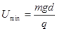 如图所示,水平放置的两平行金属板间距为 d ,电压为U,上板中央有孔,在孔正下方的下板表面上有一个质量为 m、电量为-q的小颗粒,将小颗粒由静止释放,它将从静止被加速,然后冲出小孔,则它能上升的最大高度 h = ____.两板间所加电压的最小值为____。