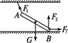 解析:A端所受绳的拉力F1沿绳收缩的方向,因此沿绳向斜上方;B端所受的弹力F2垂直于水平面竖直向上.由于此直杆的重力不可忽略,其两端受的力可能不沿杆的方向.杆受的水平方向合力应该为零.由于杆的重力G竖直向下,因此杆的下端一定还受到向右的摩擦力Ff作用. |