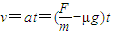 (2)力F作用t时间后撤去,此时物体的速度大小为: