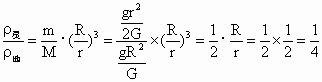 某星球半径是地球半径的2倍,当你到这个星球表面旅行时,发现自己的体重是地球表面体重的一半,则可以粗略的估计该行星的平均密度是地球平均密度的_________.