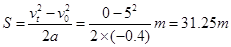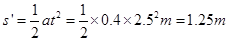 (3)把汽车的减速到零的过程看成初速为零的匀加速运动,求出汽车以0.4m/s2 的加速度经过2.5s的位移,即: