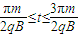 (3)2t时刻进入两极板的带电粒子,在电场中偏转角度最小,进入磁场时速度与y轴的夹角最小,在磁场中做圆周运动时轨迹的圆心角最小,在磁场中运动时间最短.用同样的方法分析得到,t=0进入两极板的带电粒子在磁场中运动的时间最长.求出圆周运动的周期,根据轨迹的圆心角求出时间范围.