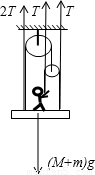【答案】分析:对人和平板整体受力分析,受重力和三根绳子的拉力,根据平衡条件列式求解即可.